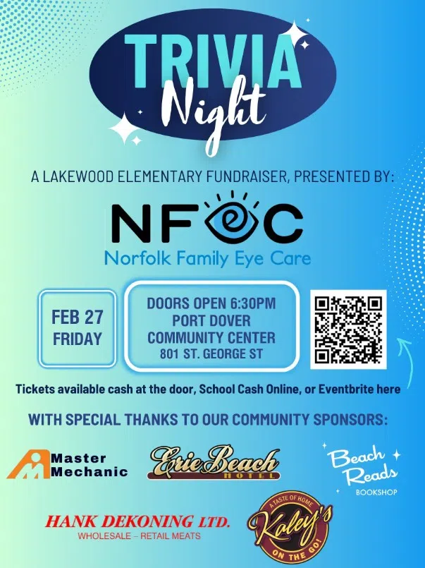 Today: Lakewood Elementary Trivia Night at Port Dover Community Centre from 6:00- 10:00 pm